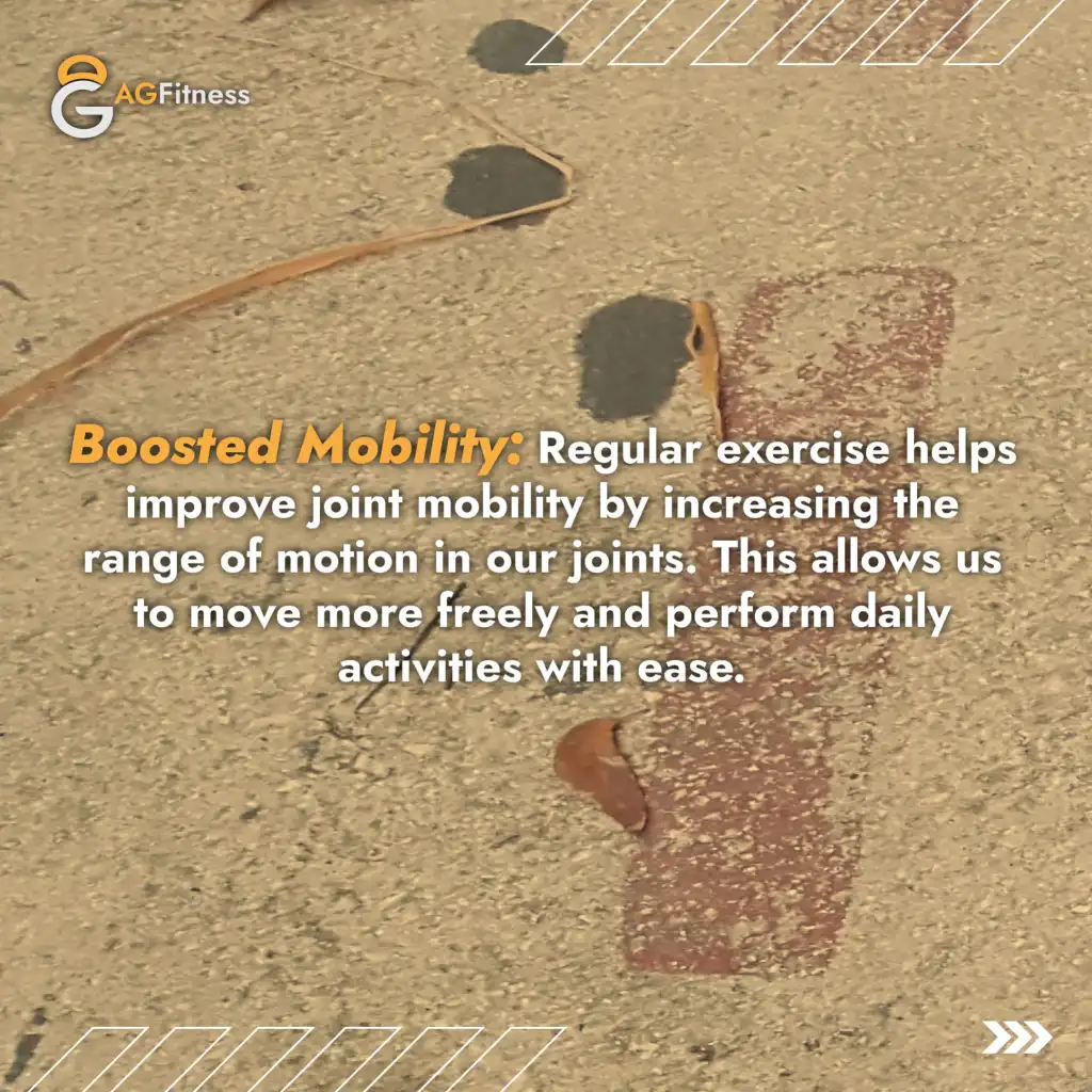 Boosted Mobility: Regular physical activity helps improve joint mobility by increasing the range of motion in our joints. This makes everyday movements easier, from walking to bending down, and allows us to perform daily activities with less effort.